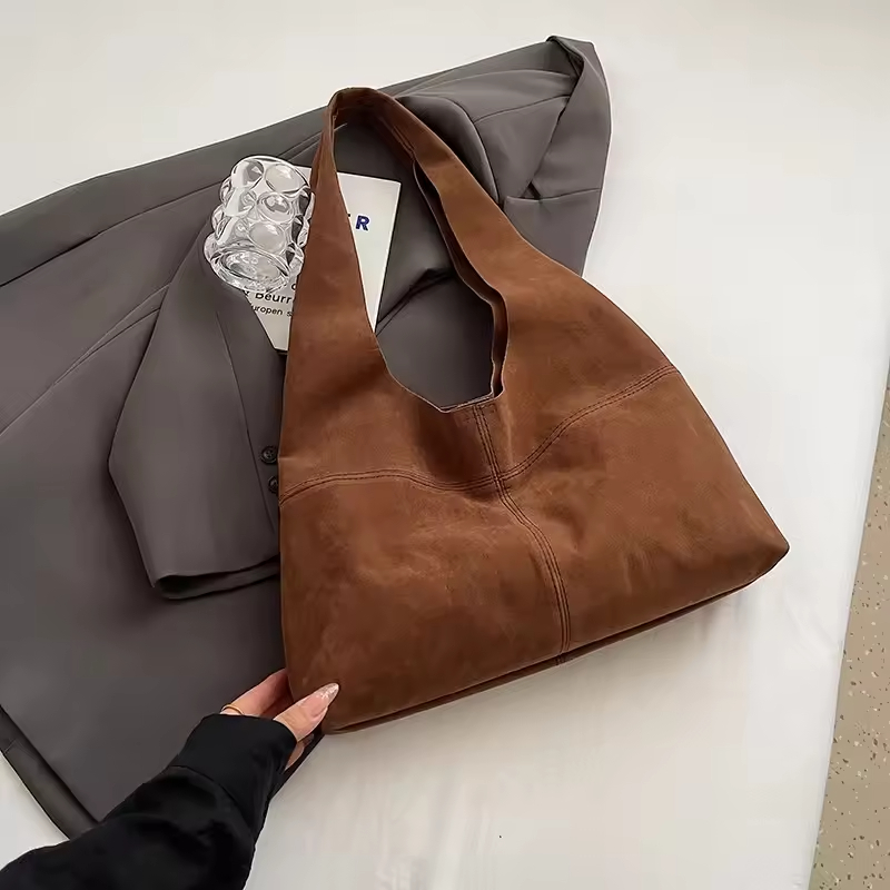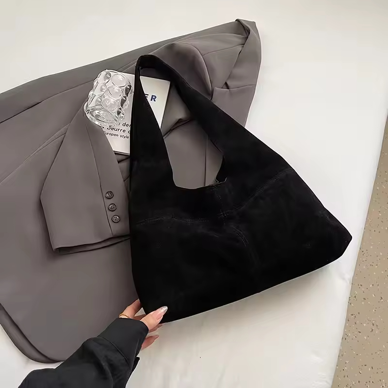 • New Korean Fashion Retro Suede Tote Bag Women Underarm Commuting Shoulder Bag Large Capacity Leather Lining Autumn Winter